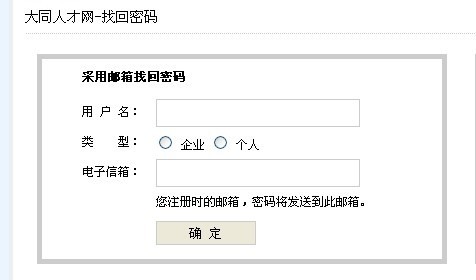 請輸入 用戶名 和當初注冊的郵箱.特別注意,選擇好,企業(yè)和個人,企業(yè)就是招聘單位,個人就是求職者 填寫完畢 點確定 就可以了,如果這個方法不好用 可以用下一個,.